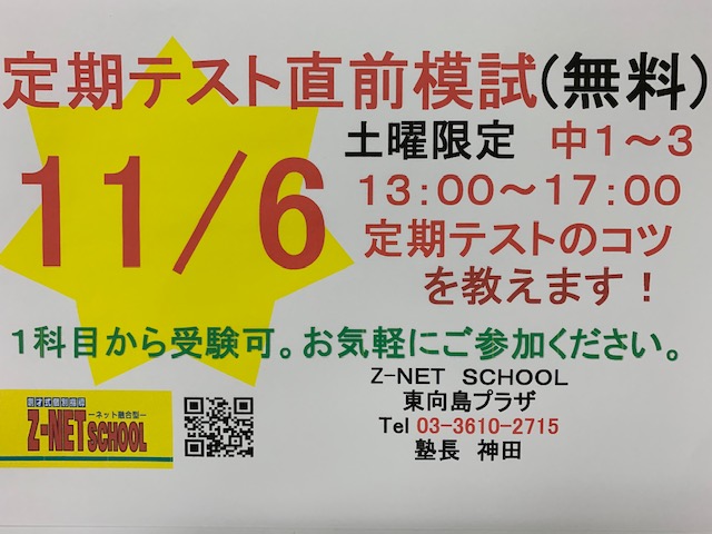 Z-NET 東向島プラザ 塾日誌 定期テスト直前模試