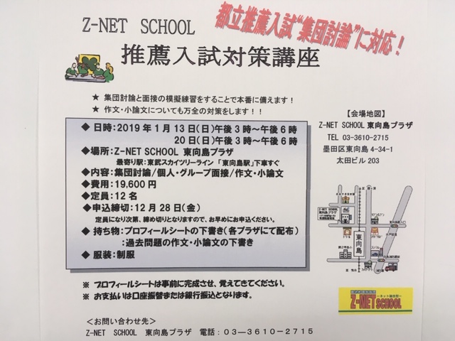 Z-NET お花茶屋プラザ 塾便り 推薦入試対策講座
